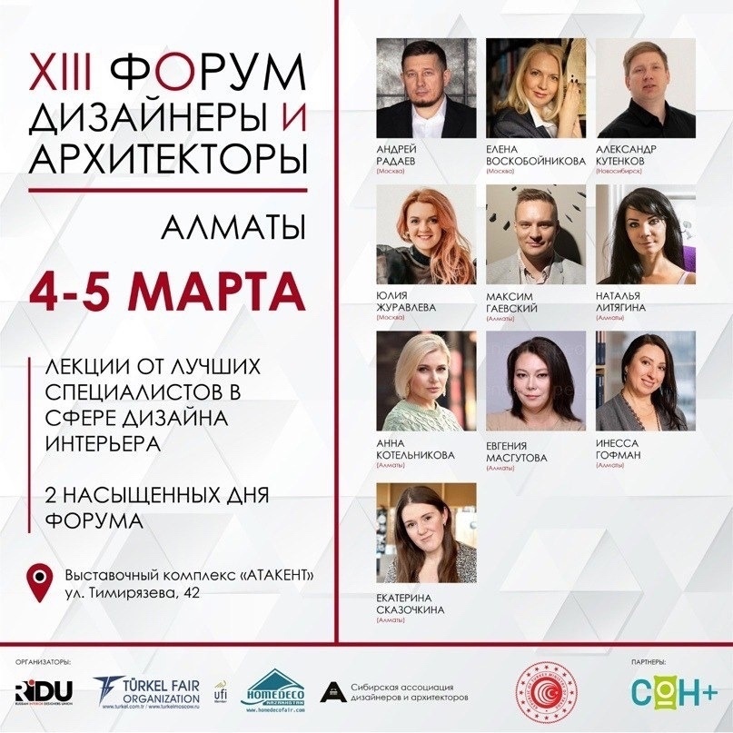 Выставку открыл Международный форум “Дизайнеры и архитекторы”, на который в качестве спикеров были приглашены лучшие представители сферы дизайна и строительства страны: Полина Афонская, Денис Татауров, Альберто Фоварон, Ева Бергман и другие. Слушатели лекций узнали о том, как создать успешную дизайн-студию, разобрались в нюансах работы со светом и планировкой и познали все грани авторского надзора.